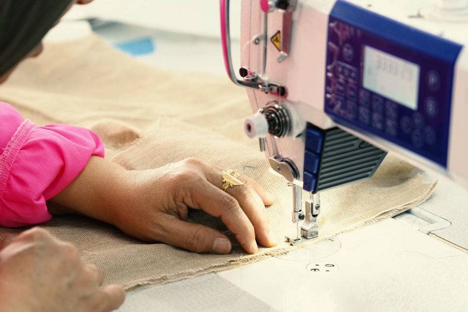 Nos ateliers sont équipés de machines modernes, comprenant des piqueuses plates, surfileuses et équipements spécifiques comme des machines à broder ou des découpeurs automatiques, assurant une production fluide et de haute qualité.