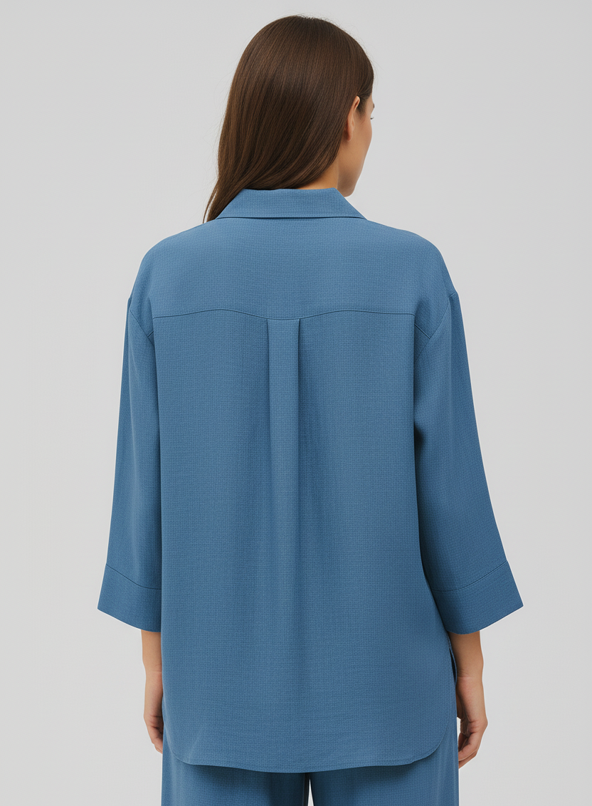 Matière : Tissu naturel et texturé (type lin, coton épais ou une toile légère). La matière semble avoir une belle tenue et être respirante.