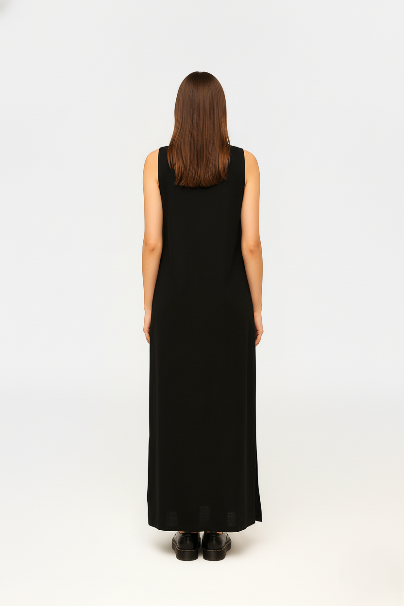 Découvrez la robe Héra, une longue silhouette fluide pensée pour sublimer chaque mouvement. Ses bretelles larges apportent confort et tenue, tandis que le bord-côte au niveau de l’encolure et des emmanchures ajoute une touche.
