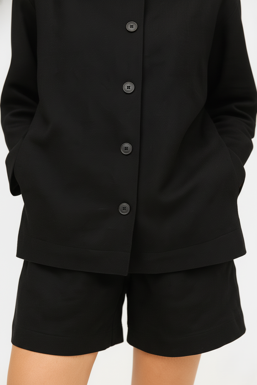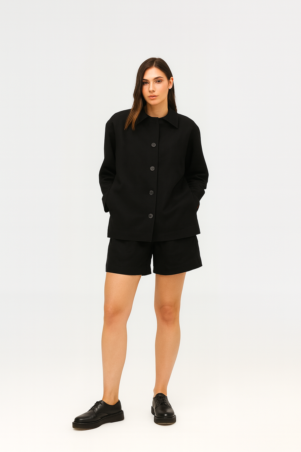 Bas : SHORT MUSA Adoptez la fraîcheur stylée avec notre short MUSA, large et facile à porter. Confectionné dans un tissu d’origine végétale, il séduit par sa légèreté naturelle et son toucher doux. Sa coupe ample offre une liberté totale de mouvement, tandis que ses poches italiennes apportent une touche pratique et élégante. Un short moderne, confortable et plein de naturel — parfait pour un look estival effortless.
