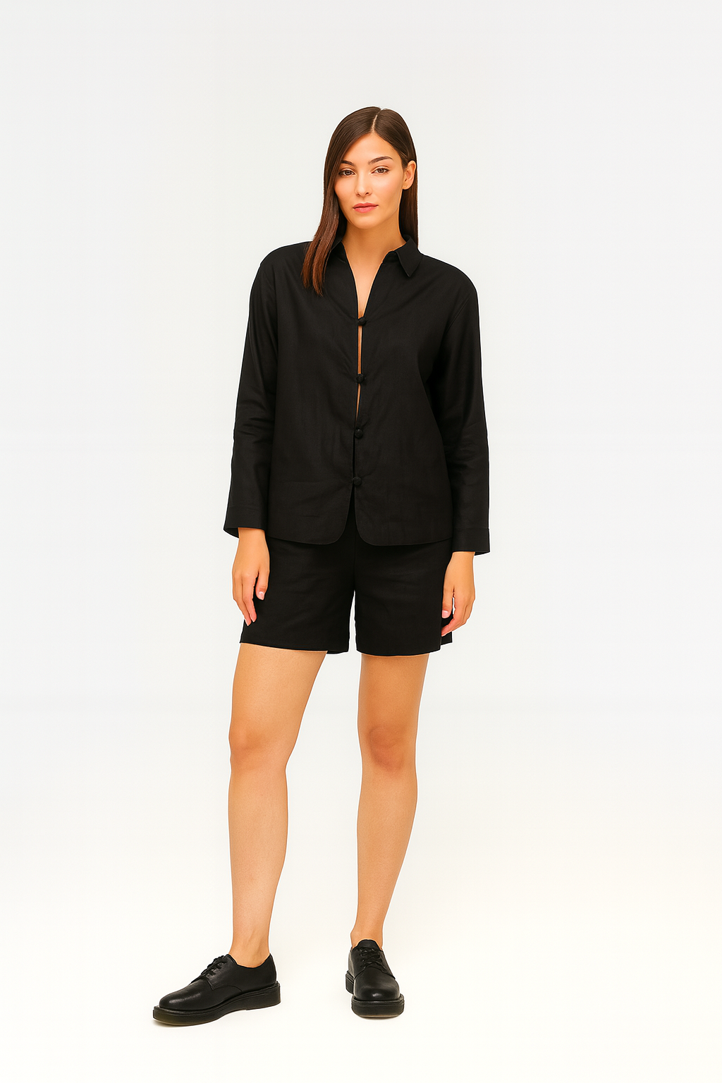 Confectionné dans un tissu d’origine végétale, il séduit par sa légèreté naturelle et son toucher doux. Sa coupe ample offre une liberté totale de mouvement, tandis que ses poches italiennes apportent une touche pratique et élégante. Un short moderne, confortable et plein de naturel — parfait pour un look estival effortless.